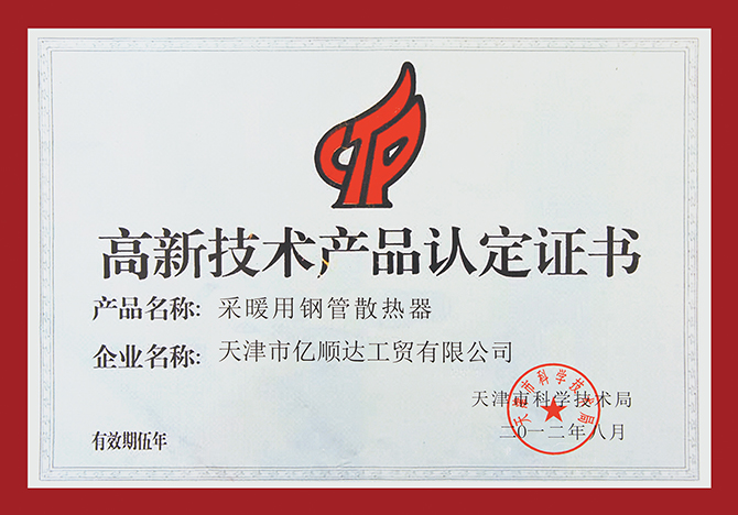 高新技術產品認證證書