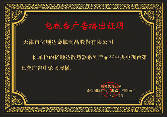 廣告播出證書